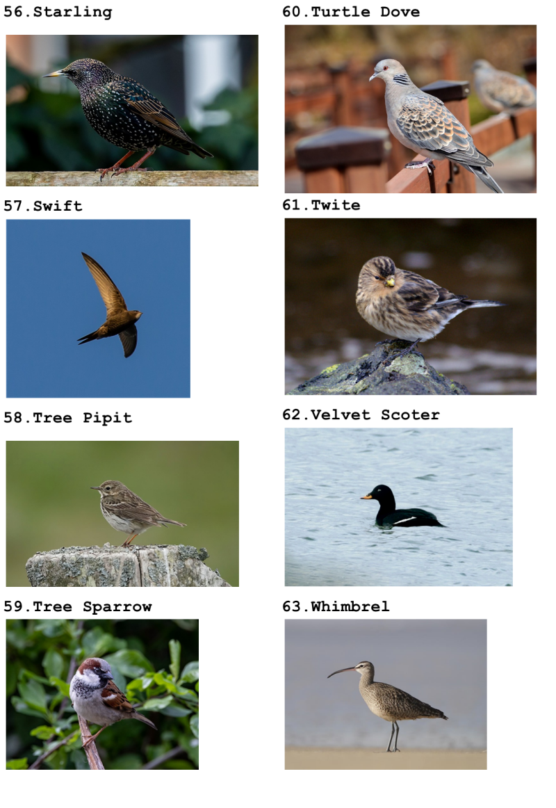 Red List Birds Numbers 56 - 70